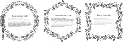 Monochrome leaf round, hexagon, square frame Lorem ipsum stock vector illustration