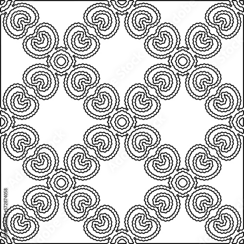 Monochrome ornamental texture with smooth linear shapes, zigzag lines, lace pattern.Abstract geometric black and white pattern for web page, textures, card, poster, fabric, textile.