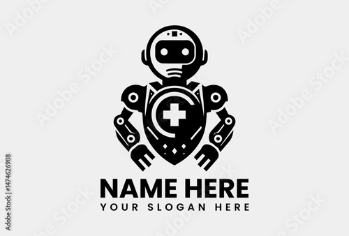 Monochrome Robot Illustration Vector Logo Minimalist Tech Art