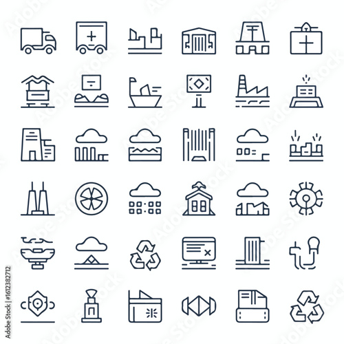Monochrome Supply Chain Line Icons Set – 56+ Vector Logistics, Manufacturing, and Transport Symbols