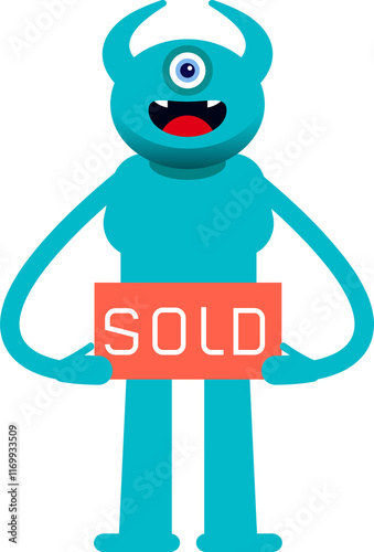 Monster Character Holding Sold Signage