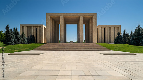 Monumental Architectural Structure Surrounded by Lush Green Landscape