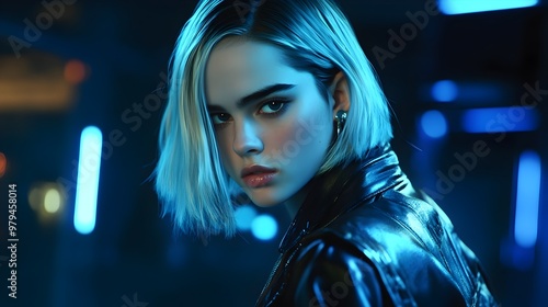 Moody Blonde Woman Portrait in Rainy Urban Cityscape