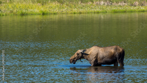 moose feeding in pond, Denali National Park, Alaska