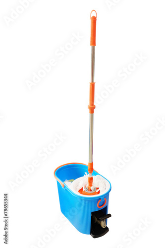 Mop and bucket isolated on a white