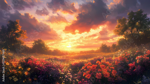 Morning dew: captivating light and nature's beauty at sunrise. Serendipity. Illustration