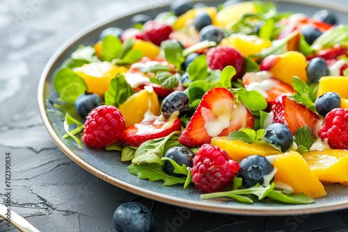 Morning meal salad with fresh fruits and berries