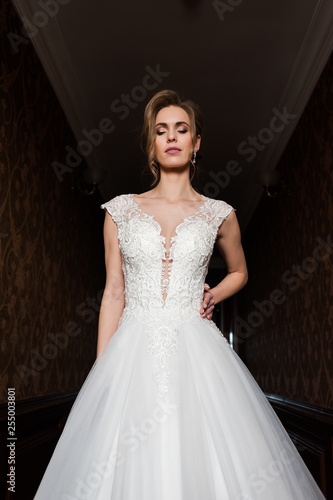 Morning of the bride when she wears a beautiful dress, woman getting ready before wedding ceremony