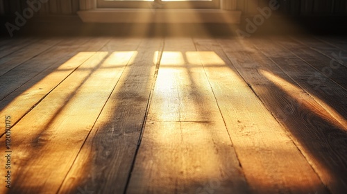Morning sunlight illuminating a freshly sanded wooden floor creating warm and inviting shadows in a serene indoor atmosphere