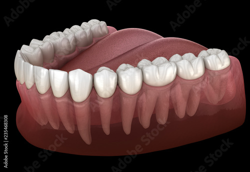 Morphology of mandibular human gum and teeth. Medically accurate tooth 3D illustration