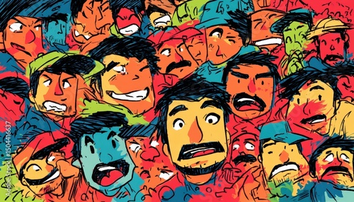 Mosaico di volti stilizzati: Espressioni variegate