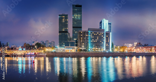 Moscow - October 21, 2018: Krasnopresnenskaya Embankment. World Trade Center and the restaurant - motor ship "Alexander Block"