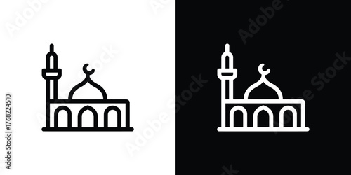 Mosque Outline Icon with Crescent Moon and Minaret on Transparent Background