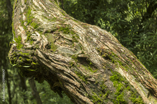 moss on the bark tree in the green forest