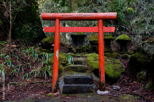 Mossy shrine in forest