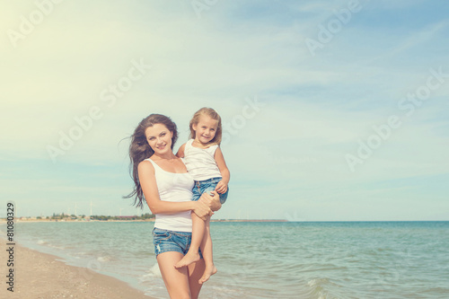 Mother and her daughter having fun on the beach