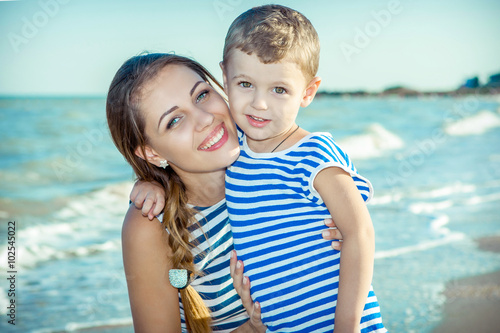 Mother and her son having fun on the beach