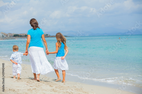 Mother and two kids having fun on beach