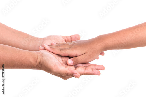Mother holding her daughter hand. Help or support concept. Isola
