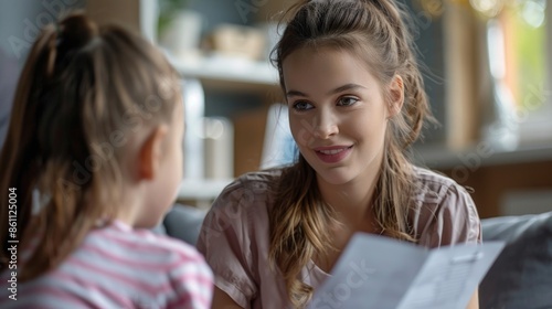 Mother Reading Letter with Daughter at Home Moments of Family Bonding and Communication