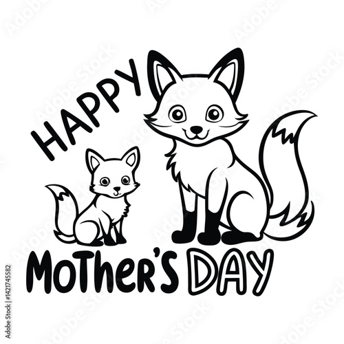 Mother's Day Card with Cute Foxes Vector Illustration.