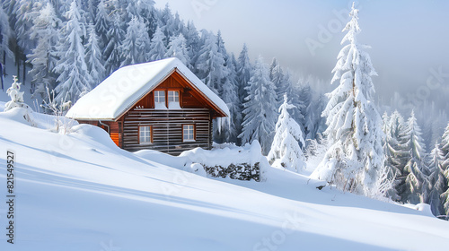 Mountain Cabin Covered in Snow