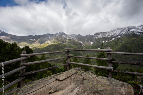 Mountain landscape in Tyrol during summer. Majestic peaks, green meadows, and clear skies invite for hiking and exploration. Perfect alpine travel and nature scenery.
