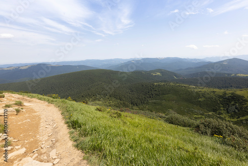 Mountain landscape in Ukrainian Carpathians in summer.