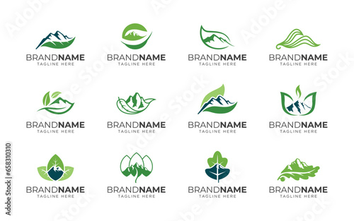 Mountain leaf logo icon set. Nature landscape logo design vector