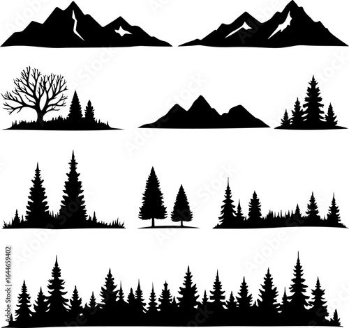 Mountain Pine Trees, and Forest Outdoor Vector Bundle