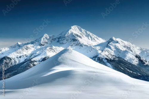 Mountain range covered in snow, breathtaking winter landscape under a clear blue sky