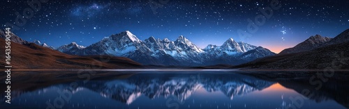 Mountain Range Reflection in a Still Lake Under a Starry Night Sky