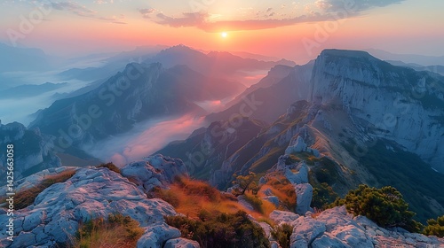 **Mountain Ridge Glowing At Golden Hour With Mist In Valleys, Top-Down Majestic Scale --Ar 16:9 --S 960 --V 6.0 --Style Raw** - @Darya (Relaxed)