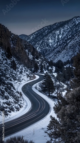 Mountain Road with Light Trails