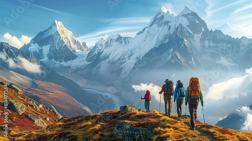 Mountain travel hike people adventure man summer journey tourism group sunset trekking. Hike travel woman mountain walk active backpack nature together sport young trail outdoor tourist hiker person