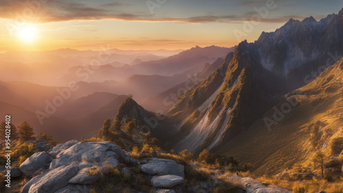 mountain view in evening with sunset