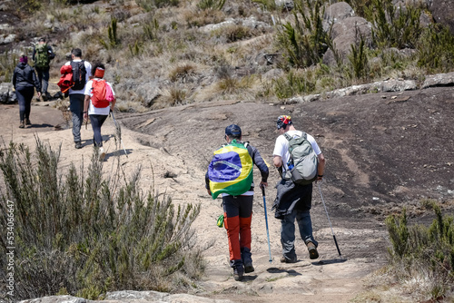 Mountaineer climbing brazil's highest peaks in the mountains with extensive hiking and backpacking.