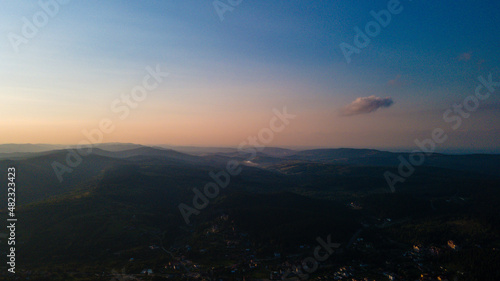 Mountains forest at sunset top view