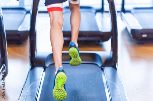 Movement in athletic shoes in the gym when an athlete runs on a treadmill