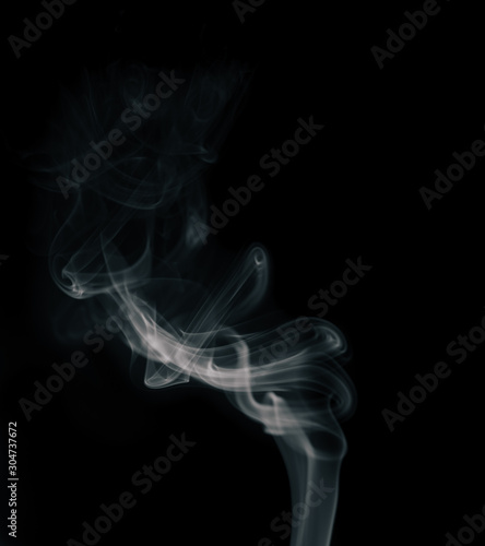 Movement of white smoke isolated on black background.Abstract shape and curve of smoke.