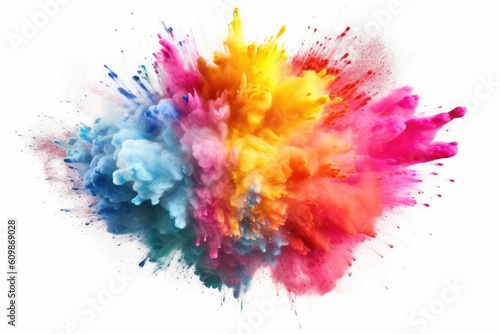 Multicolor explosion of holi powder isolated on white background. Generative AI