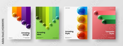 Multicolored 3D spheres corporate cover template bundle. Clean banner A4 vector design concept set.