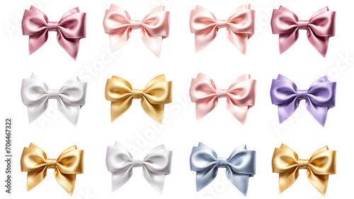Multi-colored bows isolated on white background, for attaching gifts, hair, using at festivals