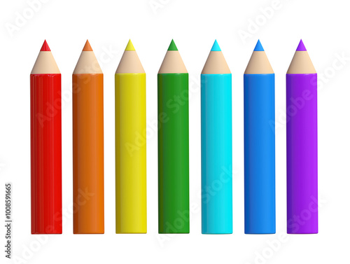 Multicolored rainbow color pencils - red, orange, yellow, green, blue, blue, purple.