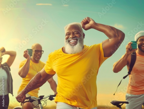 Multiethnic Senior Men Enjoying Active Lifestyle Outdoors with Bikes and Fitness