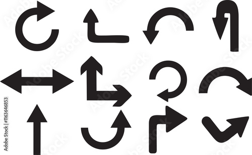 Multiple style and turn Arrow set isolated on white background. Traffic turn symbols and Direction Icons Set. Graphic design help for poster, banner, flyer or sticker. Online video games designing.