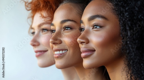 Multiracial ladies posing on studio background with Contour and Highlight makeup sample,healthy skin,collage for skin care concept,Professional Contouring face make-up over,Make up woman face.