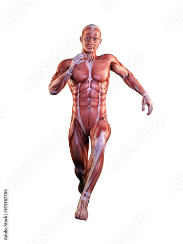Muscle man anatomy in motion 3D Illustration
