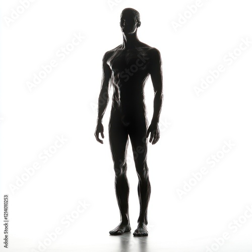 Muscular man silhouette, studio shot, white background, fitness.