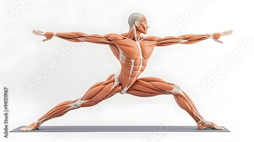 Muscular System in Yoga Pose: An illustration of the muscular system during a yoga pose, highlighting the muscles engaged in balance and stretch.